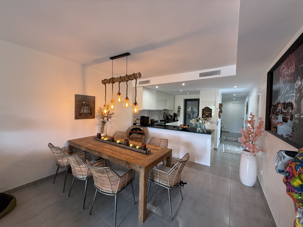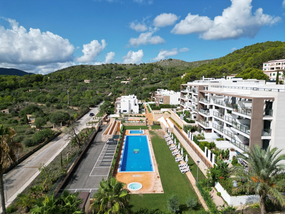 Diese Erdgeschosswohnung in Font de Sa Cala verbindet modernes Design mit viel Freiraum im Grünen. Sie befindet sich in einer im Jahr 2023 fertiggestellten Wohnanlage mit 42 Parteien. Die Wohnung hat eine bebaute Fläche von ca. 117 m² mit einer ca. 20 m² Terrasse und einem ca. 211 m² privater Garten. Der Grundriss umfasst drei Schlafzimmer, zwei geschmackvoll ausgestattete Bäder mit bodengleichen Duschen und Fußbodenheizung, sowie einen offenen Wohn- und Essbereich mit integrierter Küche. Ein Highlight ist der seitlich verlaufende Garten, der Privatsphäre und vielfältige Nutzungsmöglichkeiten bietet – ideal zur Erholung. Ergänzt wird dieser Bereich durch eine ca. 20 m² große Terrasse mit Blick ins Grüne, die zusätzlichen Raum zum Entspannen bietet. Zu den weiteren Besonderheiten der Wohnung zählt eine moderne Entkalkungs- und Osmoseanlage für beste Trinkwasserqualität. Zusätlich steht Ihnen ein Außenstellplatz sowie ein Tiefgaragenplatz mit Abstellraum zur Verfügung. Darüber hinaus können die Bewohner den gepflegten ca.25m langen Gemeinschaftspool der Anlage nutzen. Dank ihrer Kombination aus hochwertiger Ausstattung, durchdachtem Grundriss und großzügigen Außenflächen eignet sich diese Immobilie perfekt für alle, die Komfort und Naturverbundenheit verbinden möchten. Ein Großteil der Möbel kann übernommen werden.