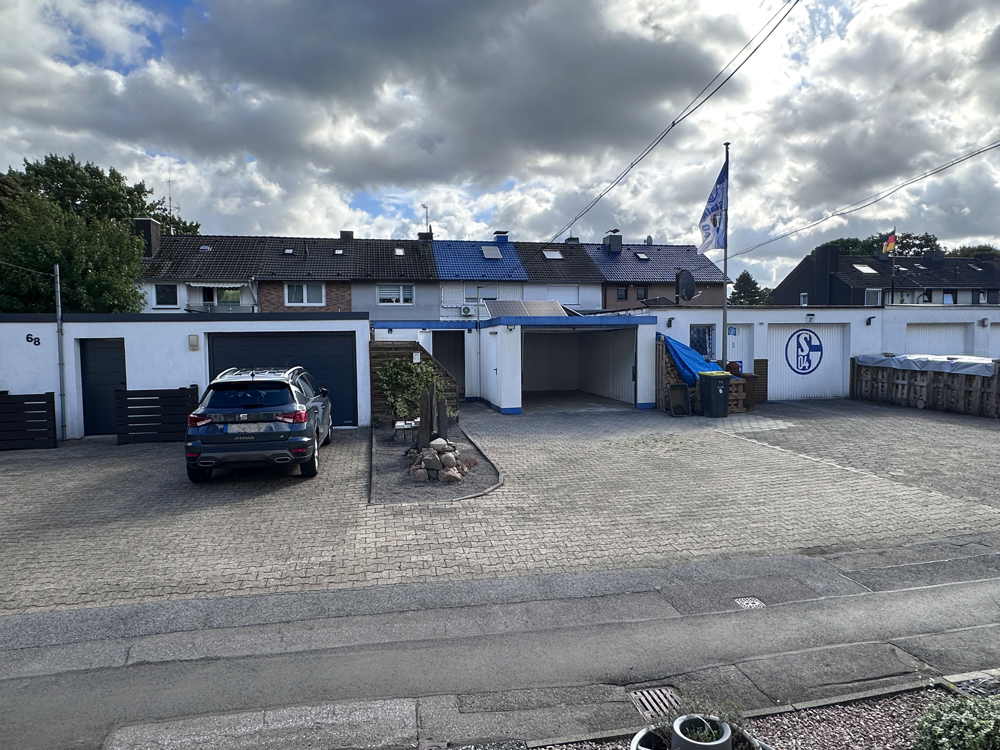 Dieses charmante Reihenmittelhaus befindet sich in einem ruhigen Stichweg zwischen Gladbeck und Gelsenkirchen und bietet eine gelungene Kombination aus bereits erfolgten Modernisierungen und interessantem Ausbaupotenzial. Im Erdgeschoss befinden sich das gemütliche Wohnzimmer mit direktem Blick in den Garten, sowie die Küche. Das Obergeschoss verfügt über zwei Schlafzimmer und ein Tageslichtbad. Darüber hinaus bietet der Dachboden eine praktische Ausbaureserve sowie einen Spitzboden, der zusätzlichen Stauraum oder perspektivisch weitere Nutzungsmöglichkeiten eröffnet. Das Dach wurde gedämmt und mit neuen Dachpfannen eingedeckt. Zum Angebot gehört eine große Garage mit elektrischem Torantrieb sowie ein angrenzender Geräteraum, der sich hervorragend für Fahrräder, Gartengeräte oder als Werkstatt nutzen lässt. Zusätzlich befindet sich auf der Garage eine moderne Photovoltaikanlage (Balkonkraftwerk), die zur Stromerzeugung genutzt werden kann. Die Außenfassade wurde gedämmt und die Fenster mit Isolierverglasung versehen, sodass bereits wichtige energetische Maßnahmen umgesetzt wurden. Das Haus ist voll unterkellert und verfügt über einen kleinen, in sich geschlossenen Garten mit einer gemütlichen Laube, die zum Entspannen einlädt. Da die Immobilie bereits freigezogen ist, steht einer kurzfristigen Übernahme nicht im Wege. Dank der ruhigen Lage in einer gewachsenen Nachbarschaft, der guten Erreichbarkeit von Einkaufsmöglichkeiten, Schulen und Freizeitangeboten sowie der optimalen Anbindung an die Autobahn ist dieses Haus die ideale Wahl für alle, die ein stadtnahes, dennoch ruhiges Zuhause mit viel Potenzial suchen.
