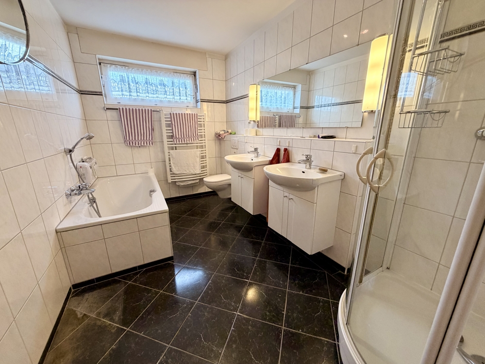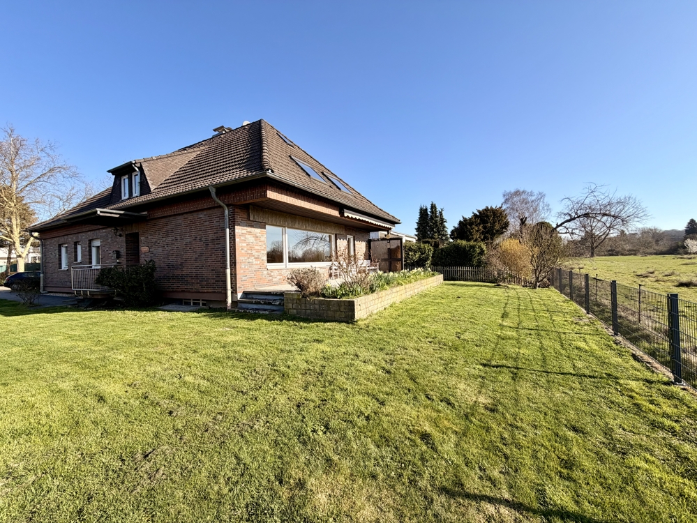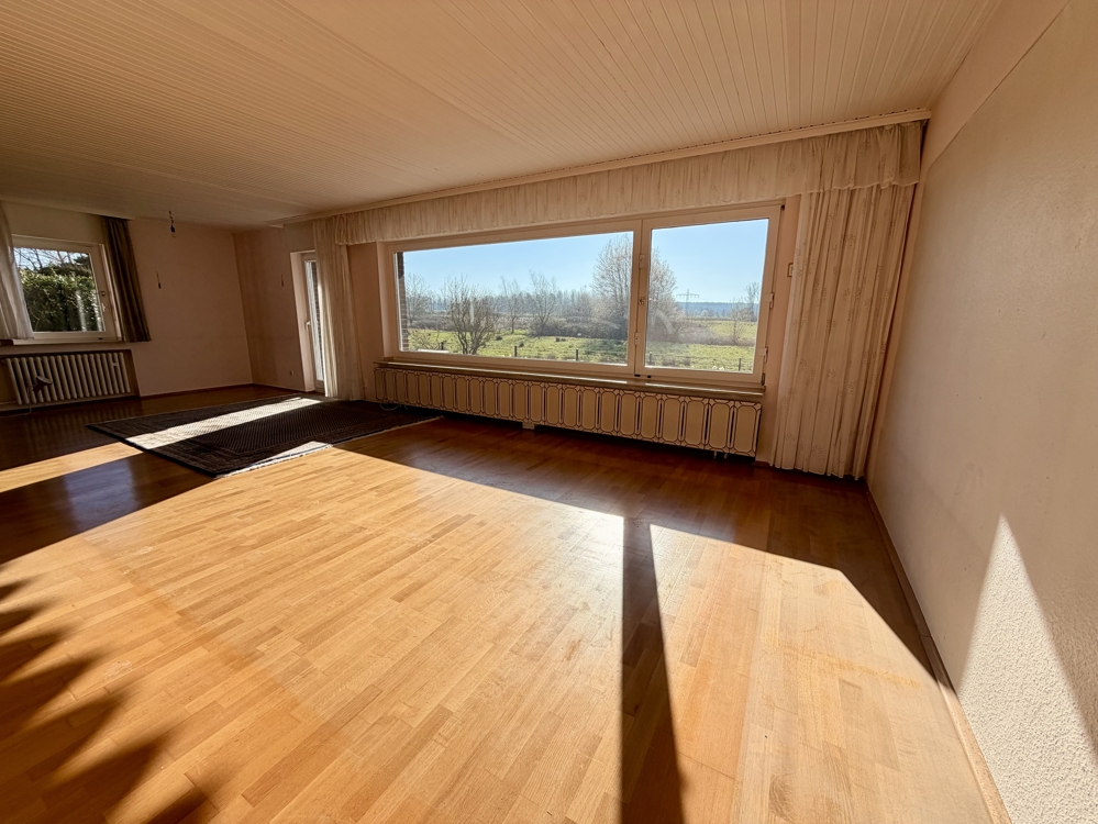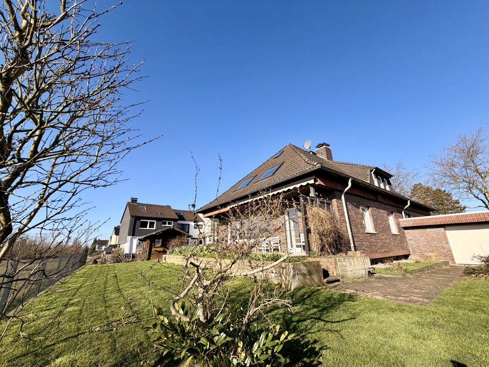 Eine Lage die man selten findet! Direkt angrenzend an weitläufige Wiesen, Koppeln und Felder, befindet sich dieses freistehende Einfamilienhaus in Ratingen Breitscheid. Die Immobilie bietet den neuen Eigentümern auf insgesamt 185 m² Wohnfläche ausreichend Platz, um das eigene und individuelle Lebenskonzept Gestalt annehmen zu lassen. Neben einem Tageslichtbad mit Dusche und Badewanne, dem Gäste-WC und 2 möglichen Schlaf- bzw. Arbeitszimmern, ist vor allem der Wohn-und Essbereich (ca. 40 m²) dieser Immobilie definitiv das Highlight! Die direkt angrenzende Küche kann ohne großen baulichen Aufwand, zum Wohnbereich hin geöffnet werden und würde den Raum um weitere ca. 10 m² vergrößern. Große Fensterfronten im Wohn- und Essbereich bieten einen direkten Blick auf die Terrasse und den Garten, welcher dann in den oben beschriebenen Fernblick übergeht. Ein riesiger und pflegeleicht gestalteter Garten bietet den neuen Eigentümern ebenfalls vielseitige Gestaltungsmöglichkeiten. Ein eigener Pool im Garten in Südausrichtung? Das wäre hier sofort denkbar. Das Obergeschoss der Immobilie hält ein zweites Bad mit Dusche bereit und wird von insgesamt 4 Schlaf- oder Arbeitszimmern abgerundet. Zudem erreichen Sie von hier aus auch die Nutzfläche im Dachgeschoss. Die Immobilie ist komplett unterkellert und bietet auch hier wahnsinnig viel Fläche, welche sich vielseitig nutzen lässt. Auch hier finden Sie ein weiteres Gäste-WC. Eine direkt am Haus angrenzende Garage ist ebenfalls vorhanden. Diese bietet praktischerweise auch ein zusätzliches Rücktor zum Garten. Nutzen Sie diese seltene Gelegenheit, welche naturnahes Wohnen und eine gute Verkehrsanbindung kombiniert!