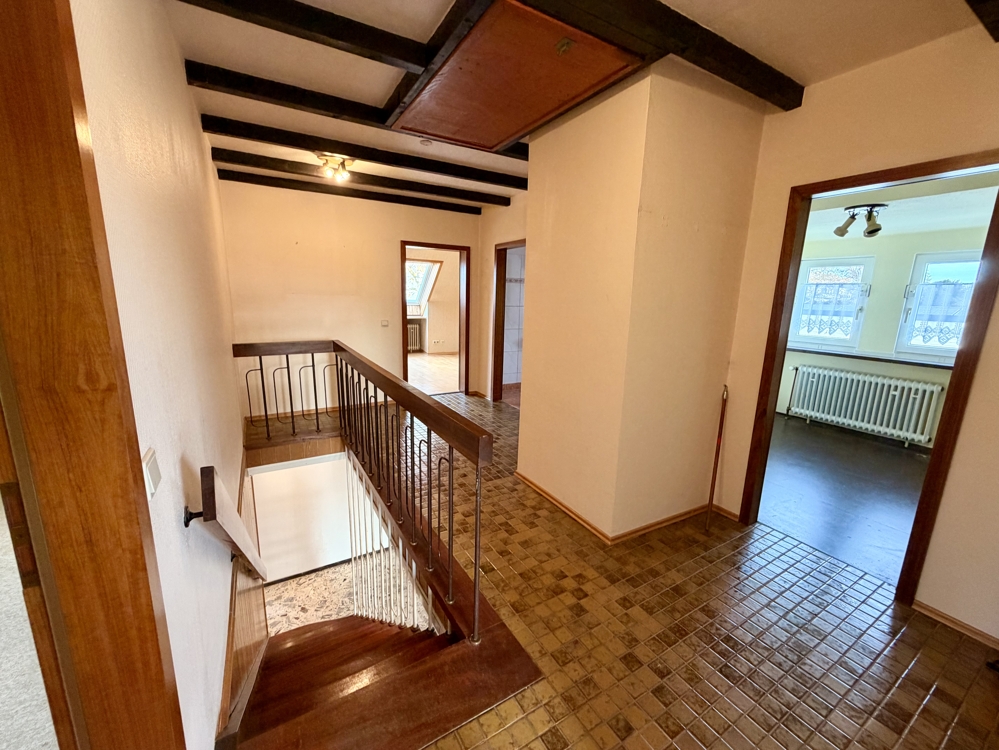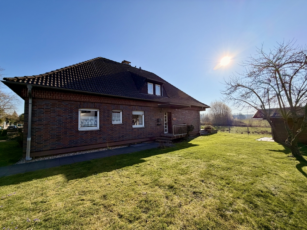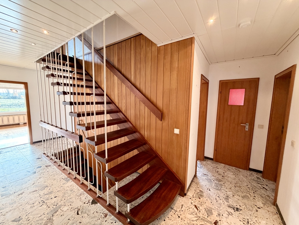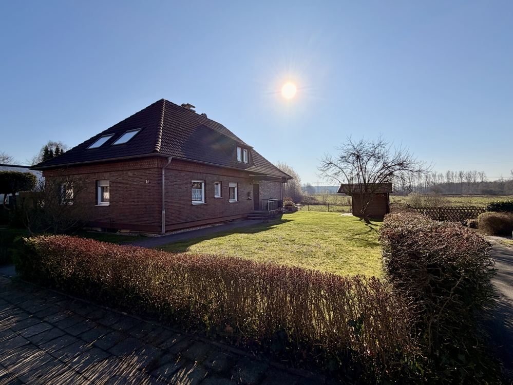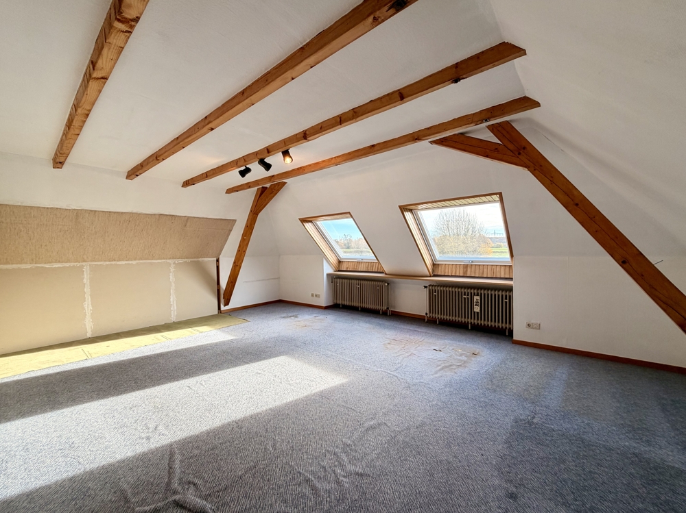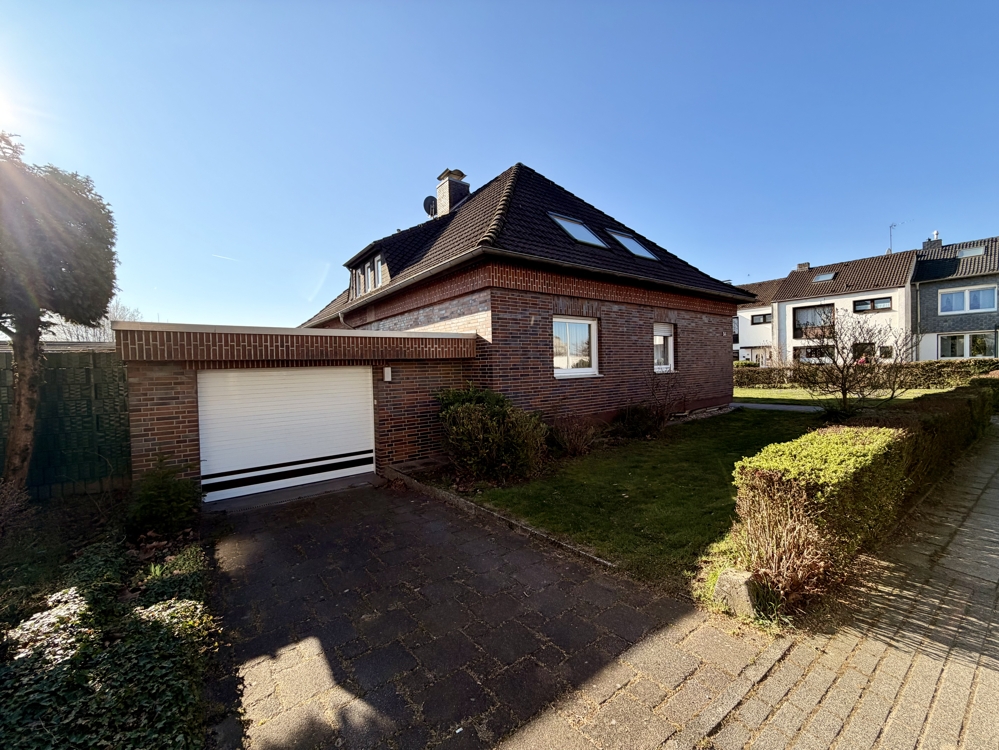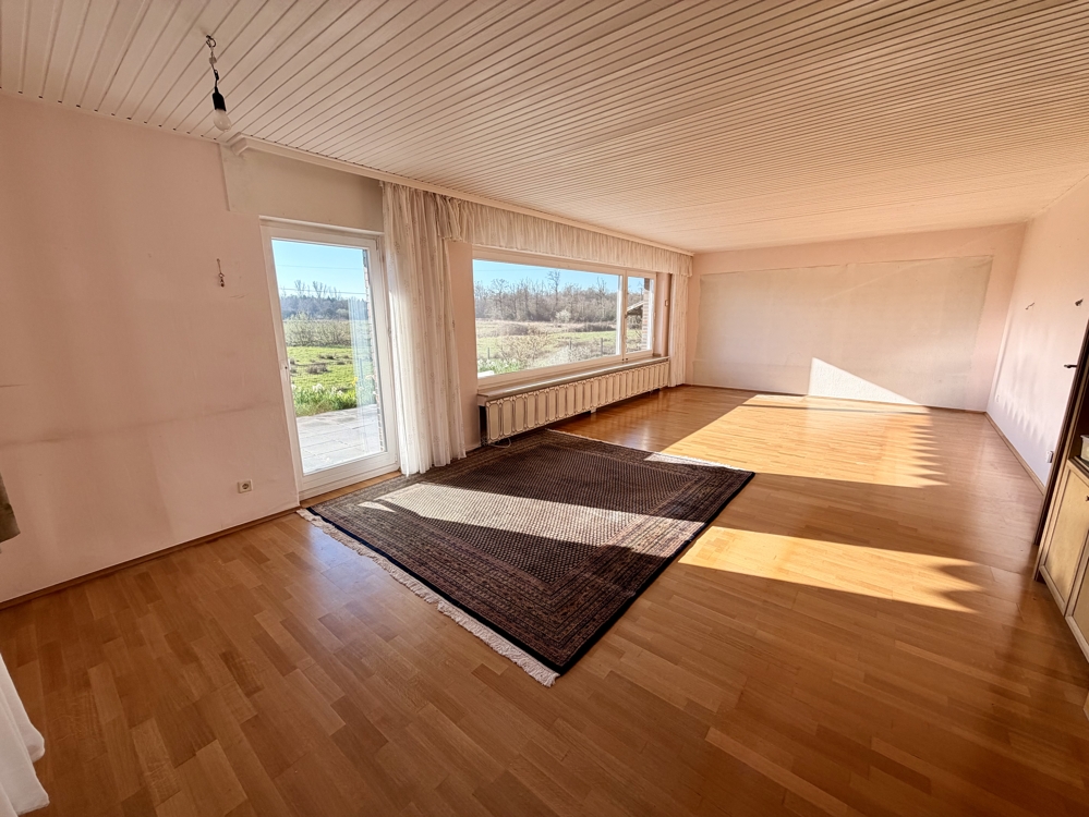 Eine Lage die man selten findet! Direkt angrenzend an weitläufige Wiesen, Koppeln und Felder, befindet sich dieses freistehende Einfamilienhaus in Ratingen Breitscheid. Die Immobilie bietet den neuen Eigentümern auf insgesamt 185 m² Wohnfläche ausreichend Platz, um das eigene und individuelle Lebenskonzept Gestalt annehmen zu lassen. Neben einem Tageslichtbad mit Dusche und Badewanne, dem Gäste-WC und 2 möglichen Schlaf- bzw. Arbeitszimmern, ist vor allem der Wohn-und Essbereich (ca. 40 m²) dieser Immobilie definitiv das Highlight! Die direkt angrenzende Küche kann ohne großen baulichen Aufwand, zum Wohnbereich hin geöffnet werden und würde den Raum um weitere ca. 10 m² vergrößern. Große Fensterfronten im Wohn- und Essbereich bieten einen direkten Blick auf die Terrasse und den Garten, welcher dann in den oben beschriebenen Fernblick übergeht. Ein riesiger und pflegeleicht gestalteter Garten bietet den neuen Eigentümern ebenfalls vielseitige Gestaltungsmöglichkeiten. Ein eigener Pool im Garten in Südausrichtung? Das wäre hier sofort denkbar. Das Obergeschoss der Immobilie hält ein zweites Bad mit Dusche bereit und wird von insgesamt 4 Schlaf- oder Arbeitszimmern abgerundet. Zudem erreichen Sie von hier aus auch die Nutzfläche im Dachgeschoss. Die Immobilie ist komplett unterkellert und bietet auch hier wahnsinnig viel Fläche, welche sich vielseitig nutzen lässt. Auch hier finden Sie ein weiteres Gäste-WC. Eine direkt am Haus angrenzende Garage ist ebenfalls vorhanden. Diese bietet praktischerweise auch ein zusätzliches Rücktor zum Garten. Nutzen Sie diese seltene Gelegenheit, welche naturnahes Wohnen und eine gute Verkehrsanbindung kombiniert!