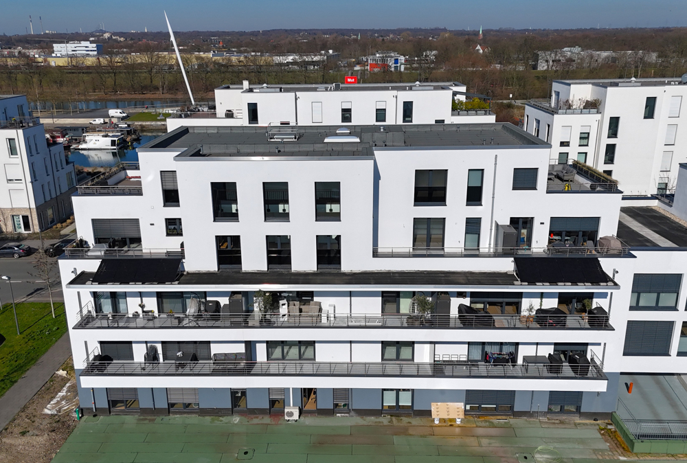 Die angebotenen Wohnungen befinden sich im beliebten Hafenquartier "Graf Bismarck" in Gelsenkirchen. Dieser Standort lässt keine Wünsche offen – er verbindet urbanes Leben mit einer ruhigen, grünen Umgebung. Die Lage bietet exzellente Anbindungen an den öffentlichen Nahverkehr, sodass Sie schnell die Innenstadt von Gelsenkirchen erreichen und von dort aus in alle Richtungen weiterreisen können. Im Umkreis der Immobilie finden Sie zahlreiche Einkaufsmöglichkeiten, Restaurants und Cafés, die den täglichen Bedarf decken und zum Verweilen einladen. Familien und Naturfreunde werden die nahegelegenen Parks und Grünanlagen zu schätzen wissen, die für erholsame Spaziergänge und Freizeitaktivitäten geeignet sind. Zudem sind diverse Schulen und Kindergärten in der unmittelbaren Umgebung vorhanden, was den Standort besonders für Familien attraktiv macht. Die Zoom-Erlebniswelt befindet sich zudem genau gegenüber des Hafenquartiers! Fahrradfahrer kommen durch die Anbindung an die Erzbahntrasse über die Grimberger-Sichel voll auf Ihre Kosten. In nur wenigen Radminuten erreichen Sie über eine alte Bahntrasse die Jahrhunderthalle in Bochum sowie die als Kulturerbe ausgezeichnete Zeche Zollverein. Für Berufspendler sind die Anbindungen an die Autobahnen A42 und A2 ideal, die eine schnelle und unkomplizierte Erreichbarkeit der benachbarten Städte ermöglicht. Die Nähe zu wichtigen Wirtschaftsstandorten im Ruhrgebiet macht diesen Standort auch für Berufstätige interessant. Hobby-Kapitäne können ihre Boote direkt am quartierseigenen Hafen anlegen und mittels direktem Zugang auf dem Rhein-Herne-Kanal schippern. Passionierte Freunde des Ruhrgebietes können ein Ausblick über den Rhein-Herne-Kanal bis hin zur Veltins-Arena genießen.