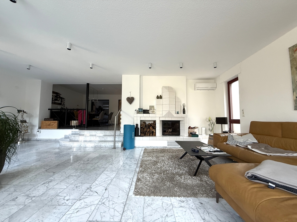 Diese attraktive Erdgeschosswohnung mit einer Wohnfläche von ca. 135 m² befindet sich im Erd- und Kellergeschoss eines gepflegten Dreifamilienhauses in zentraler Lage von Gladbeck-Mitte. Die Wohnung überzeugt durch ihre großzügige Raumaufteilung, eine besondere Split-Level-Architektur sowie eine hochwertige Ausstattung und bietet ein außergewöhnliches Wohnambiente mit direktem Gartenbezug. Über die einladende Diele gelangen Sie in die Küche, das Schlafzimmer sowie in das moderne, barrierefreie Badezimmer, das mit einer großzügigen bodengleichen Dusche ausgestattet ist. Herzstück der Wohnung ist der offen gestaltete Wohn- und Essbereich, der durch seine Split-Level-Anordnung architektonisch reizvoll gestaltet ist. Ein Kamin sorgt für eine angenehme Wohnatmosphäre, während der elegante weiße Marmorboden und die gasbetriebene Fußbodenheizung den hohen Ausstattungsstandard unterstreichen. Große Fensterflächen lassen viel Tageslicht in die Räume und öffnen den Wohnbereich direkt zum Garten, wodurch Innen- und Außenraum harmonisch miteinander verbunden werden. Im Kellergeschoss der Wohnung stehen ein weiteres Schlafzimmer, ein zusätzliches Badezimmer, ein Hauswirtschaftsraum sowie eine Sauna zur privaten Nutzung zur Verfügung. Ergänzend bietet ein renovierter Kellerraum ausreichend Stauraum für persönliche Gegenstände. Der angelegte Garten mit Teich und Geräteschuppen lädt zum Entspannen und Verweilen ein und bietet einen hohen Erholungswert inmitten der Stadt. Die Gartenfläche ist direkt vom Wohnbereich aus zugänglich und erweitert den Wohnraum ideal in den Außenbereich. Eine zur Wohnung gehörende Garage sowie ein zusätzliches Carport bieten komfortable Parkmöglichkeiten. Die zentrale Lage in Gladbeck-Mitte ermöglicht eine gute Anbindung an öffentliche Verkehrsmittel sowie kurze Wege zu Einkaufsmöglichkeiten, Ärzten, Schulen und weiteren Einrichtungen des täglichen Bedarfs. Wir freuen uns auf Ihr Anfrage!