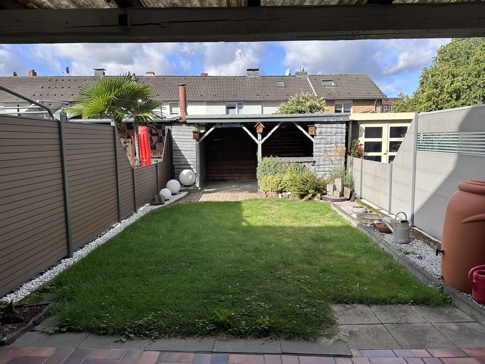Dieses charmante Reihenmittelhaus befindet sich in einem ruhigen Stichweg zwischen Gladbeck und Gelsenkirchen und bietet eine gelungene Kombination aus bereits erfolgten Modernisierungen und interessantem Ausbaupotenzial. Im Erdgeschoss befinden sich das gemütliche Wohnzimmer mit direktem Blick in den Garten, sowie die Küche. Das Obergeschoss verfügt über zwei Schlafzimmer und ein Tageslichtbad. Darüber hinaus bietet der Dachboden eine praktische Ausbaureserve sowie einen Spitzboden, der zusätzlichen Stauraum oder perspektivisch weitere Nutzungsmöglichkeiten eröffnet. Das Dach wurde gedämmt und mit neuen Dachpfannen eingedeckt. Zum Angebot gehört eine große Garage mit elektrischem Torantrieb sowie ein angrenzender Geräteraum, der sich hervorragend für Fahrräder, Gartengeräte oder als Werkstatt nutzen lässt. Zusätzlich befindet sich auf der Garage eine moderne Photovoltaikanlage (Balkonkraftwerk), die zur Stromerzeugung genutzt werden kann. Die Außenfassade wurde gedämmt und die Fenster mit Isolierverglasung versehen, sodass bereits wichtige energetische Maßnahmen umgesetzt wurden. Das Haus ist voll unterkellert und verfügt über einen kleinen, in sich geschlossenen Garten mit einer gemütlichen Laube, die zum Entspannen einlädt. Da die Immobilie bereits freigezogen ist, steht einer kurzfristigen Übernahme nicht im Wege. Dank der ruhigen Lage in einer gewachsenen Nachbarschaft, der guten Erreichbarkeit von Einkaufsmöglichkeiten, Schulen und Freizeitangeboten sowie der optimalen Anbindung an die Autobahn ist dieses Haus die ideale Wahl für alle, die ein stadtnahes, dennoch ruhiges Zuhause mit viel Potenzial suchen.