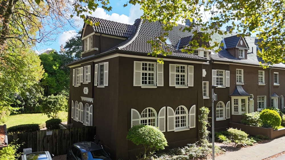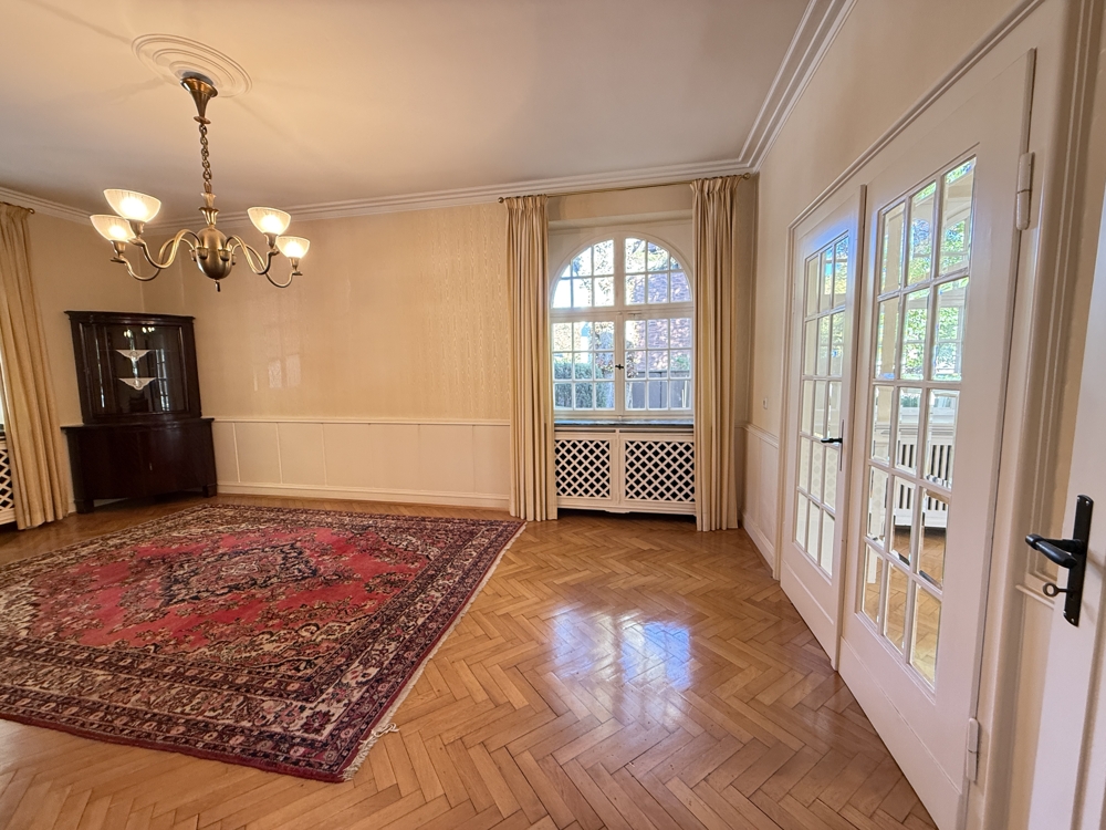 Eine der beeindruckendsten Mietgelegenheiten in Buer: Es besteht aktuell die Möglichkeit die 3 Wohnungen dieser denkmalgeschützten Stadtvilla von 1915 als Ganzes zu nutzen und die großzügige Raumaufteilung im historischen Stil mit zeitgemäßer Ausstattung zu genießen. Damit bietet sich einer Familie die Chance, das gesamte Haus für sich zu bewohnen. Das Erdgeschoss mit ca. 120 m² Wohnfläche empfängt Sie mit einem weitläufigen Dielenbereich und hohen Decken. Das Wohn- und Esszimmer erstreckt sich über eine besonders großzügige Fläche und ist durch zahlreiche große Fenster lichtdurchflutet, was eine freundliche und einladende Atmosphäre schafft. Im Wohnbereich sorgt ein Kamin für zusätzliche Gemütlichkeit. Die beiden Bereiche sind dezent durch eine beeindruckende Holztür getrennt, die bei Bedarf geöffnet werden kann und so einen harmonischen, fließenden Übergang ermöglicht. Das Badezimmer wird gerade saniert. Der Dielenbereich und die Küche sind mit einem Fliesenboden ausgestattet, der den historischen Charakter des Hauses auf besondere Weise unterstreicht. Im Wohn- und Esszimmer sowie im Arbeitszimmer liegt Echtholzparkett. Ein besonderes Highlight ist der weitläufige Garten mit einem kleinen Teehäuschen an der historischen Grenzmauer – ideal als Rückzugsort oder charmantes Raucherhaus. Die Wohnung im ersten Obergeschoss mit ebenfalls 120 m² Wohnfläche überzeugt durch helle, großzügige Räume und eine klassische Raumaufteilung. Drei Zimmer, Küche und Bad bieten vielseitige Nutzungsmöglichkeiten. Ein sonniger Balkon lädt zum Entspannen ein und vermittelt Ruhe und Privatsphäre. Im Dachgeschoss wurden zwei Appartements zu einer Einheit von 70 m² zusammengelegt. Sichtbare Holzbalken prägen den Wohnbereich und schaffen eine gemütliche Atmosphäre. Die kleine Küche kann auf Wunsch geöffnet und in eine offene Wohnküche integriert werden. Ein modern saniertes Duschbad mit Hauswirtschaftsraum sowi