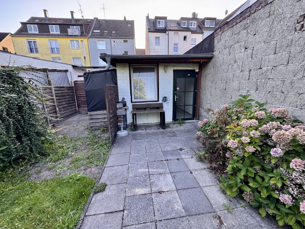 Charmante Erdgeschosswohnung mit Gartenhäuschen in Gladbeck. In ruhiger Lage auf der Voßstraße in Gladbeck wartet diese ansprechende Erdgeschosswohnung auf neue Bewohner. Mit 2,5 Zimmern, ca. 63 m² und einer großzügigen Küche bietet sie ausreichend Platz für individuelle Wohnideen. Der moderne graue Fliesenboden verleiht den Räumen eine elegante und zugleich pflegeleichte Note. Besonders hervorzuheben ist der liebevoll abgeteilte Garten, der nicht nur zum Entspannen einlädt, sondern mit einem gemauerten Gartenhäuschen zusätzlichen Raum für Stauraum oder kreative Nutzungsideen eröffnet. Die Wohnung ist ab sofort verfügbar und bietet eine perfekte Kombination aus Komfort, Gemütlichkeit und einem idyllischen Außenbereich.